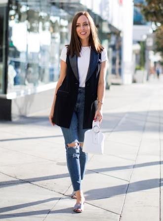 Vest alias rompi ini juga bisa banget jadi outer buat tampilan semi formal. Soalnya modelnya mirip sama blazer tapi tanpa lengan. Cocok buat pakai dalaman kemeja atau blus. Tapi dipakai bareng ripped jeans pun tetap oke~