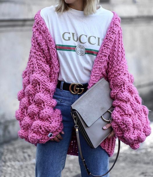 Knit cardigan ini bisa jadi andalan saat udara lai agak dingin, biar sedikit menghangatkan tapi tetap fashionable. Kalau kamu lagi kurang enak badan tapi mesti keluar rumah juga bisa banget pakai outer rajutan kayak gini.