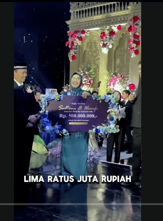 "Terlebih puncaknya saat selesai wedding dance, mempelai diberikan hadiah yang membuat kita semua yang hadir ikut terkejut karena nominal yang fantastis dan belum pernah ada di event-event kita sebelumnya," lanjutnya lagi.