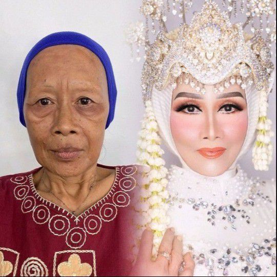 # Seorang Makeup Artist (MUA), Rangga Juans, berhasil mengubah wajah nenek ini tampak seperti muda lagi. Selain mengandalkan makeup, Rangga juga menggunakan lakban untuk menarik wajah sang nenek. Terdengar aneh, tapi nyatanya wajah sang nenek jadi berubah banget!