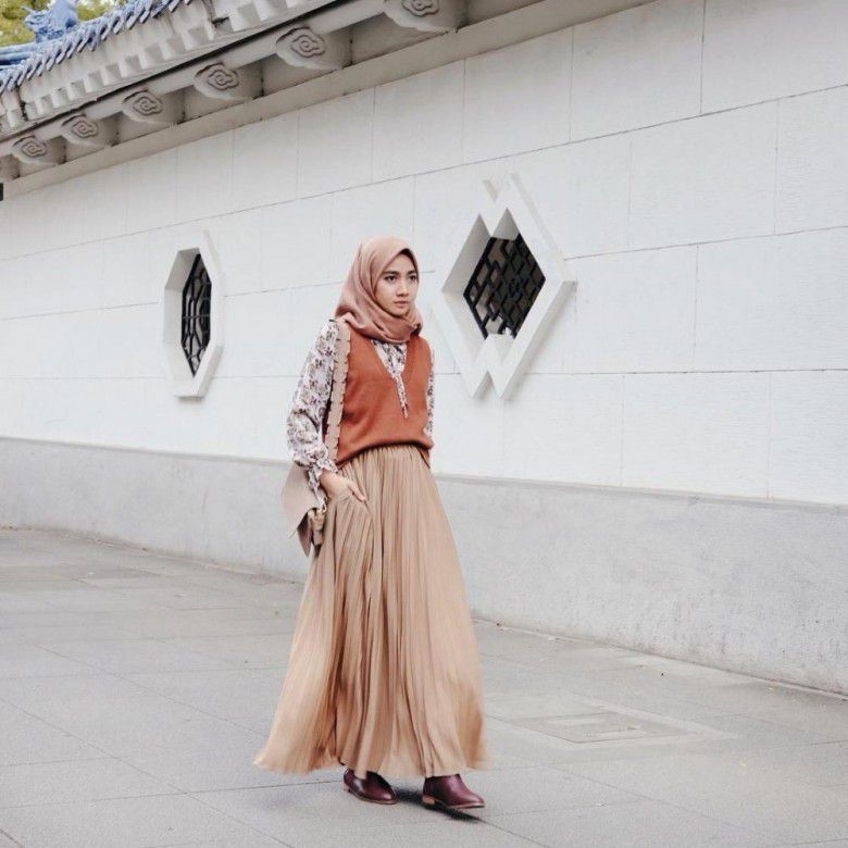 Kamu juga bisa lho tampil kasual ke kantor dengan pilihan pleats skirt atau plisket yang akan terlihat manis saat dipadukan dengan kemeja. Kamu bisa memilih rok pleats skirts berwarna cokelat polos dengan kemeja berwarna terang dan pasmina berwarna gelap. Dijamin tampilan kamu akan terlihat lebih menggemaskan.