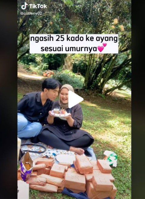 Seorang cewek memberikan 25 kado ke kekasihnya saat berulang tahun ke 25 (tiktok.com)