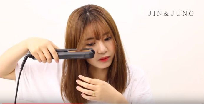 6. Setelah dipotong, rapikan dengan alat pelurus rambut atau pencatok. Dengan alat tersebut buat gerakan menggulung agar poni see trough mengembang.