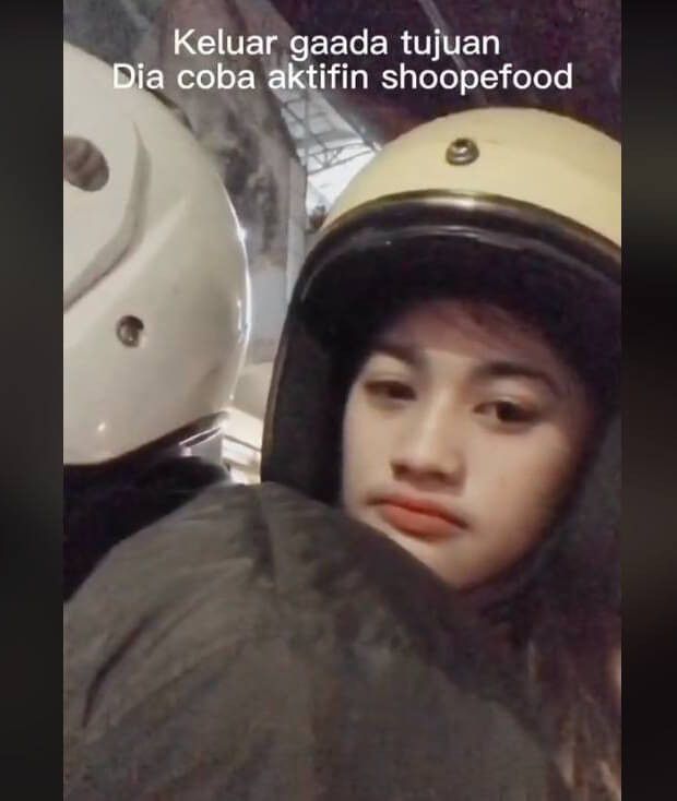 "Keluar nggak ada tujuan, dia coba aktifin ShopeeFood, eh dapat orderan," tulis wanita ini di awal video berdurasi 34 detik itu.