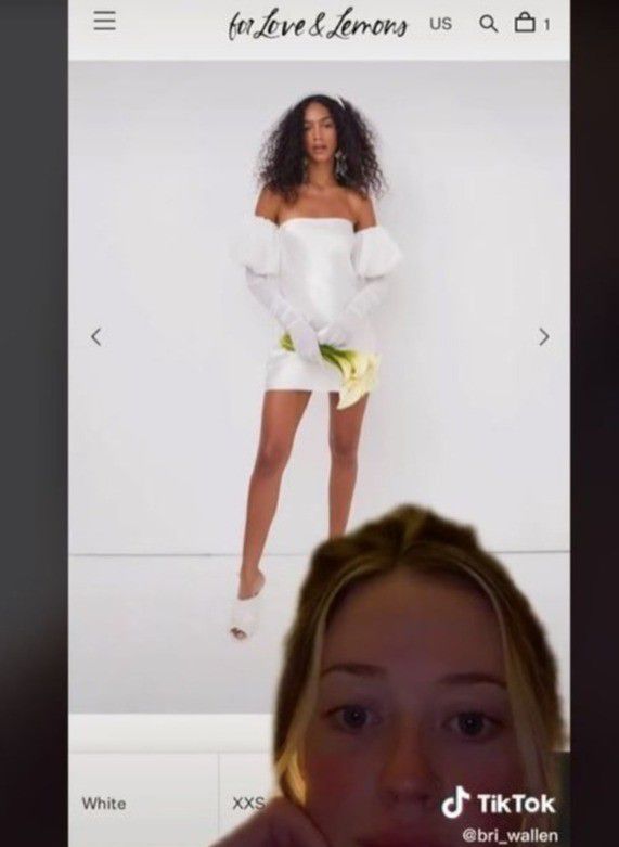 Seorang wanita syok saat beli gaun putih secara online yang aslinya tak sesuai harapan (tiktok.com)
