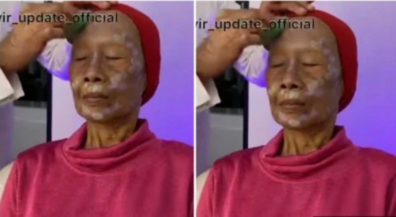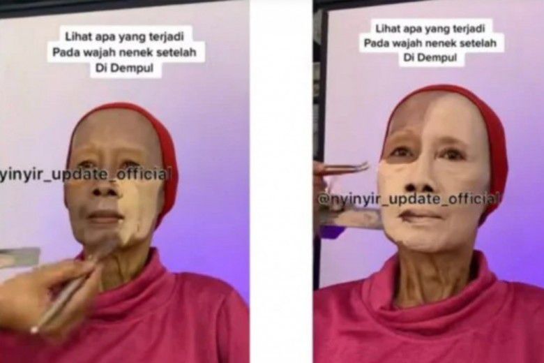 4. Di bawah mata dan pipi diberi pewarna sedikit untuk menyamarkan garis-garis halus dan kerutan wajah.