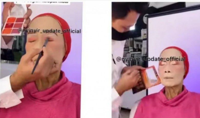 8. Sentuhan akhirnya, mata si nenek diberi softlense agar terlihat lebih muda.