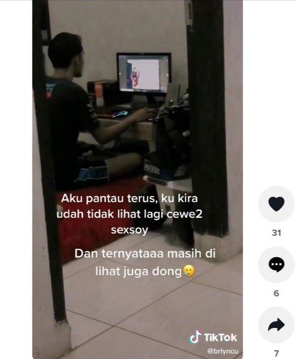 Videonya itu pun ia unggah di TikTok melalui akun bernama @brlyncu. Dari video, tampak suaminya sedang mengamati deretan foto wanita seksi dari layar komputer.