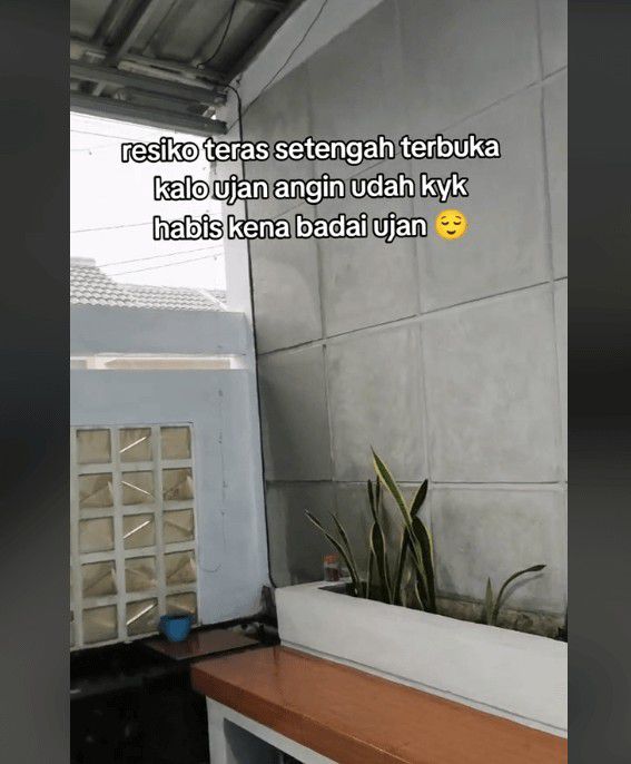 "Risiko teras setengah terbuka kalau hujan angin sudah kayak habis kena badai hujan," tulis akun TikTok @niningajaaaaaa.