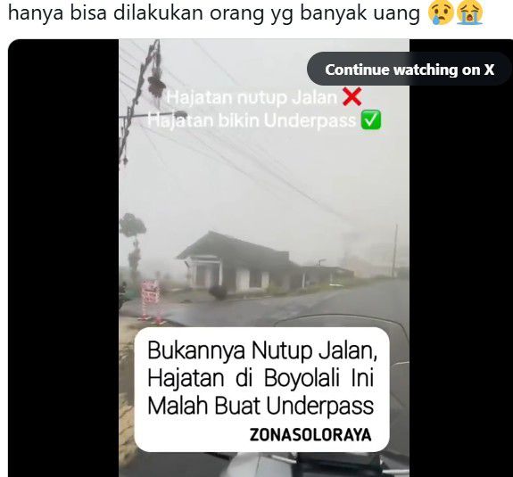 "Hajatan nutup jalan (tidak). Hajatan bikin underpass (iya)," demikian keterangan dalam video.