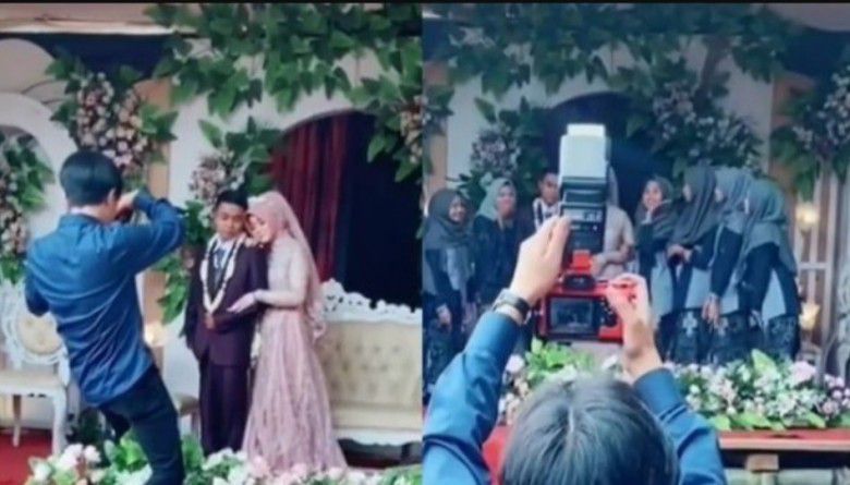 Heboh seorang fotografer pernikahan berpose di panggung pelaminan yang cukup bikin was was (tiktok.com)