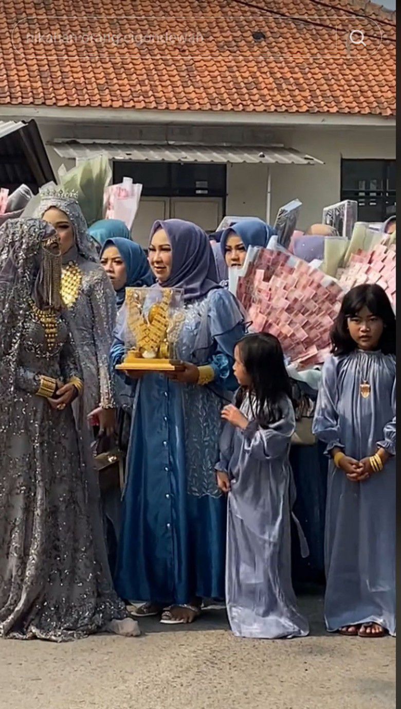 Bagaimana tidak, dari video tersebut, tampak rombongan pengantin dengan busana meriah membawakan seserahan emas kuning.