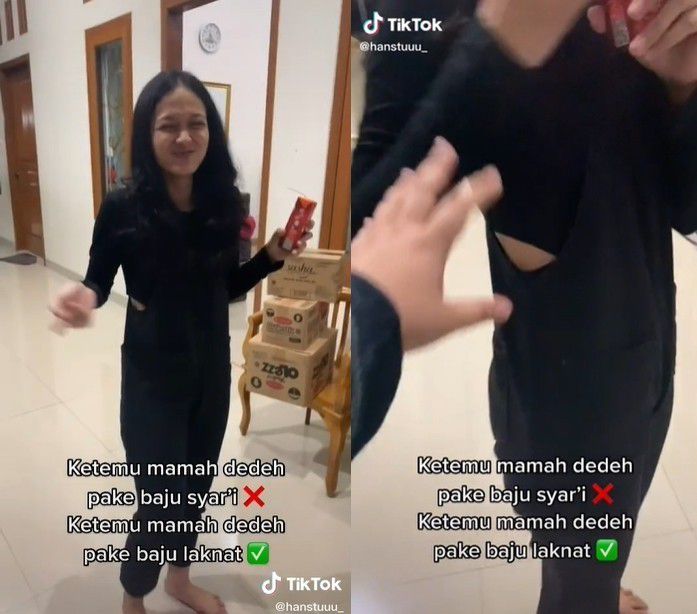 Video tersebut diunggah melalui akun TikTok @/hanstuuu_, Sabtu (13/11/2021). Dalam videonya, terlihat ada wanita yang berdiri di depan mamah dedeh sambil mengenakan pakaian yang cukup terbuka.