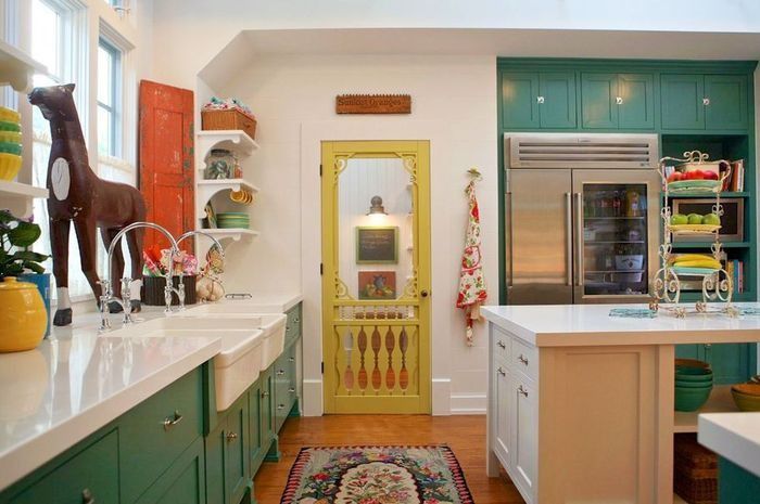 Dapur dengan nuansa putih memang memberikan kesan elegan, tapi lama-lama juga bisa jadi membosankan. Ada baiknya, ganti warna dapur kamu dengan menabrakkan warna dengan susunan palet warna berbeda dalam nuansa terang sebagai temanya. Hal tersebut akan memberi kesan ceria dan lebih homey, sehingga jauh dari kesan membosankan.