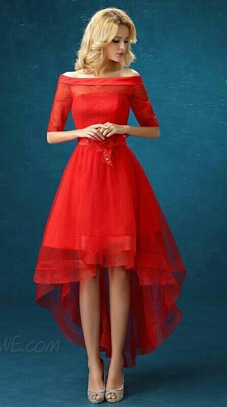 Jika kamu punya badan berbentuk curvy, coba deh desain ini. Desain gaun warna merah yang sederhana tapi manis.