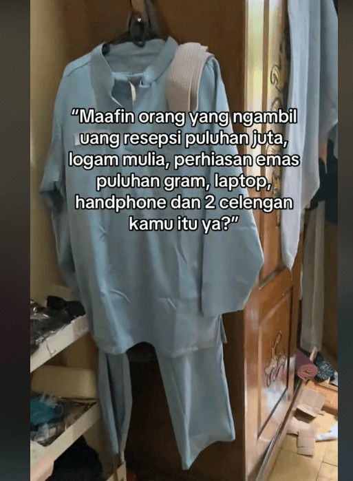 "Maafin orang yang ngambil uang resepsi puluhan juta, logam mulia, laptop, handphone, dan dua celengan kamu itu ya?" tulis keterangan TikTok @devi_iann.