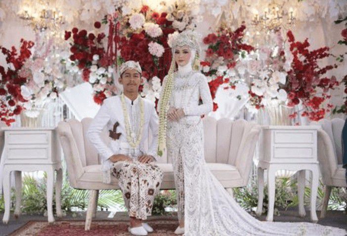 Terlihat ada beberapa daun anggur yang merambat serta deretan pohon rindang yang menghiasi area latar panggung pernikahan. "Alhamdulillah lancar-lancar
