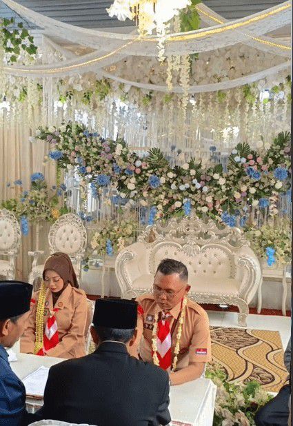 Viral pengantin menikah pakai seragam pramuka (via tiktok)