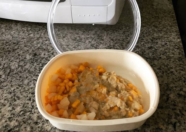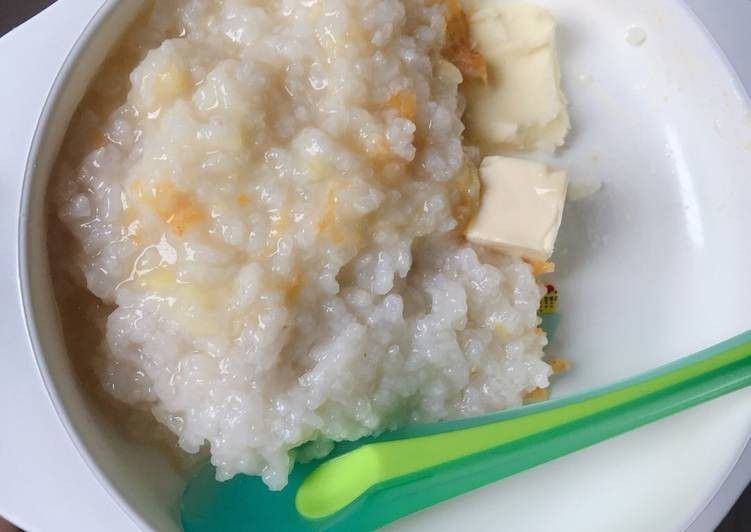 Bahan-bahan yang dibutuhkan di antaranya adalah 1 buah ceker + tulang paha ayam kampung, 4 sendok makan beras putih organik, wortel yang sudah diparut secukupnya plus kacang hijau yang sudah dikupas.