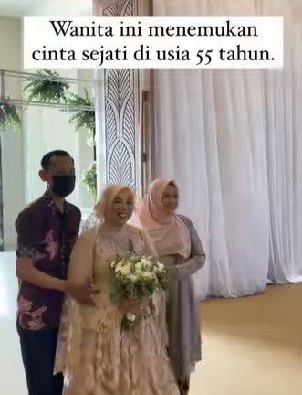Saat masuk ke dalam lokasi akad nikah, wajah wanita itu sangat bahagia. “Wanita ini menikah dalam usia 55 tahun, setelah kesabarannya menanti jodoh,” tulis caption pada video itu.