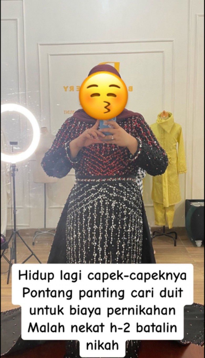 "Hidup lagi capek-capeknya pontang panting cari duit untuk biaya pernikahan malah nekat h-2 batalin nikah," tulis keterangan akun TikTok @nameera.mua.