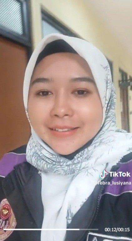 Seorang wanita bahagia bisa datang ke kampusnya untuk menjadi ojek online (tiktok.com)
