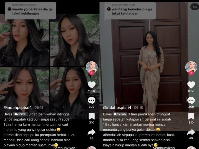 "Maaf ni ya, tanpa maksud menyinggung...kok bisa sih? Awal rencana nikah gimana? Mewah lho ini nikahnya," tanya seorang netizen. "Saya juga masih nggak habis pikir kok bisa. Padahal pacarannya juga gak sebentar nikah juga disaksiin kedua orang tuanya," balas Indah.