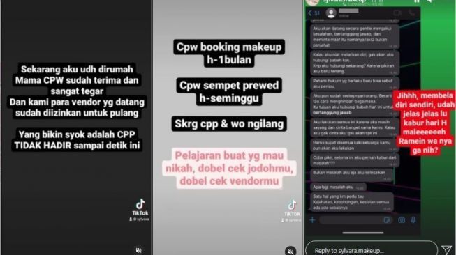 Padahal, calon pengantin wanita sudah membooking MUA sejak sebulan sebelumnya. Melalui story Instagram, MUA tersebut langsung memberikan kabar terbaru, bahwa calon pengantin pria telah mengirimkan pesan kepada ayah calon pengantin wanita.