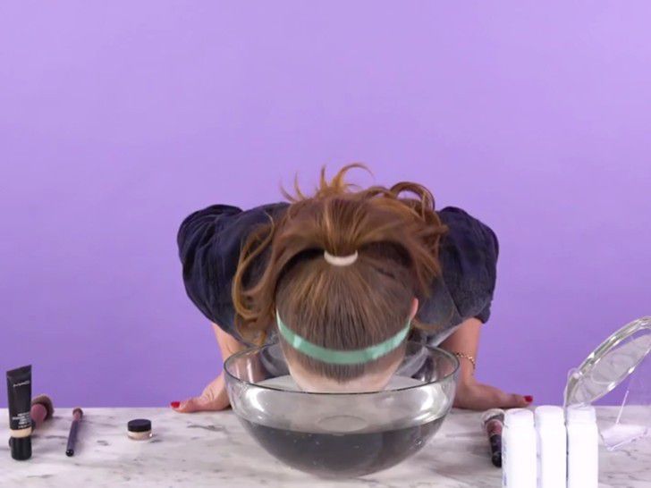 Gimana caranya? Kalo semua makeup kamu udah selesai, siapin wadah bersih yang diisi air dingin. Terus rendem deh muka kamu di sana selama 30 detik. Terus, angkat wajah kamu dari air dan tepuk-tepuk sisa air yang nempel secara perlahan ya. Abis itu, baru deh keringin wajah pakai handuk pelan-pelan.