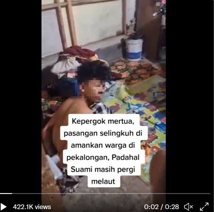 "Kepergok mertua, pasangan selingkuh di amankan warga di Pekalongan," ujar pemilik video, seperti dikutip dari SuaraJabar.id, Minggu (14/8/2022).