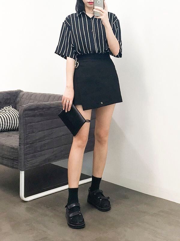 Biar nggak ngebosenin, coba bermain dengan motif sederhana kayak garis-garis. Kamu bisa memadukan bawahan hitam dengan atasan motif garis-garis atau sebaliknya. Berbeda kan dari hari ke harinya?
