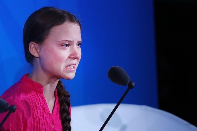 1. Greta Thunberg. Gadis asal Swedia yang masih berusia 16 tahun ini terkenal dengan pidatonya tentang perubahan iklim di United Nations General Assembly.