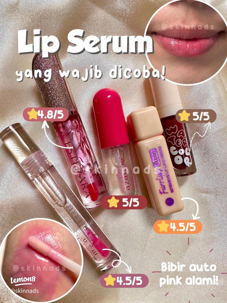 Lip serum mengandung bahan-bahan yang bisa membuat bibir tampak lebih sehat, kenyal, dan lembab, seperti: