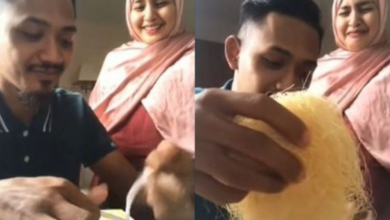 Lalu, ia pun meletakkan bingkisan itu ke dekat telinganya untuk menebak apa isi di dalamnya. Saat dibuka, wajah sang suami mendadak berubah.