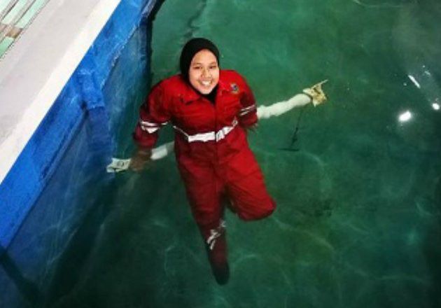 Potret Nur Izzati yang sedang berlatih mengelas di air (dream.co.id)