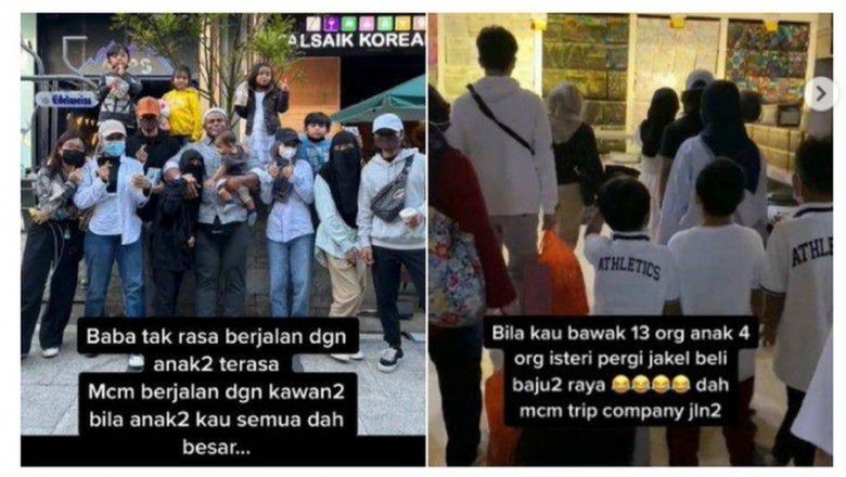 Nah, baru-baru ini viral video seorang pria yang pergi membeli baju lebaran di sebuah mal bersama keempat istrinya serta 13 anaknya.