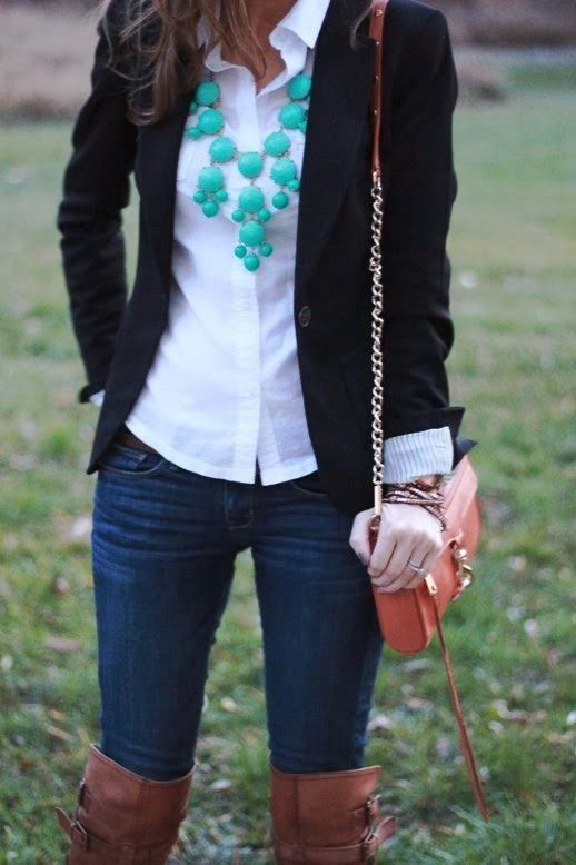 Baju putih memang polosan banget. Nah biar ngga terlihat cupu, coba deh kreatif milih aksesoris kalo lagi make kemeja putih. Misalnya dengan beraneka bentuk kalung.