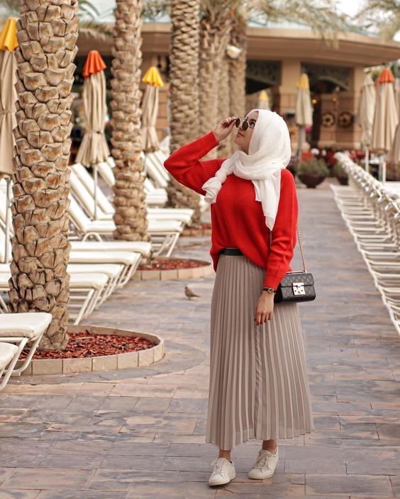Buat atasannya, bisa banget maen-maen dengan kreativitasmu. Cantik dengan memakai atasan rajut berwarna ngejreng. Untuk kesan feminin kamu bisa milih pakaian berwarna pastel. Pakai jilbab yang ngga ribet. Kamu bisa pake jilbab segi empat yang diiket atau dipeniti. Bisa juga pake pasmina. Untuk warna, sesuaikan sama warna pakaianmu, biar berkesan.