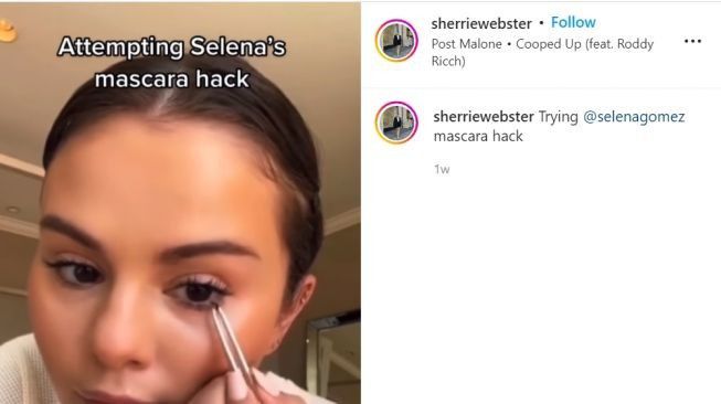 Sherrie membagikan cara pengaplikasian maskara ala Selena Gomez melalui akun media sosialnya dan memperoleh ribuan Likes.
