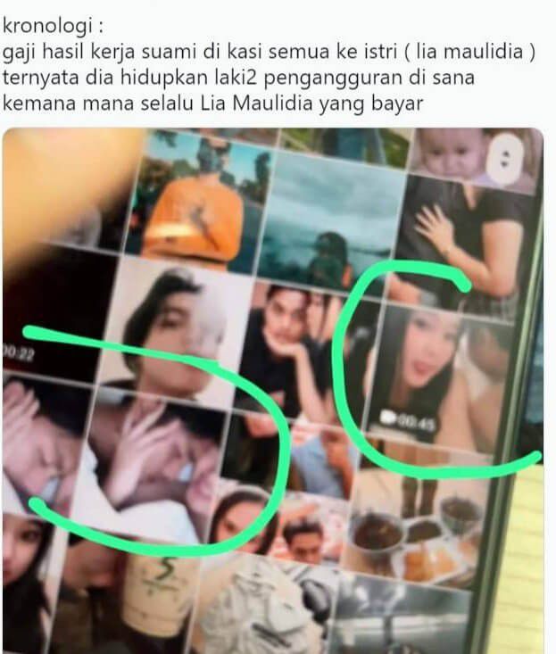 "Kronologi: gaji hasil kerja suami dikasih semua ke istri (Lia Maulidia) ternyata dia hidupkan laki-laki pengangguran di sana ke mana-mana selalu Lia Maulidia yang bayar," tulis akun tersebut.