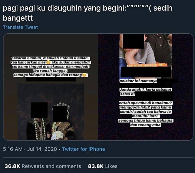 Jadi, mantan suami N ternyata punya wanita idaman lain atau istilahnya pelakor waktu N lagi berada di kota lain.