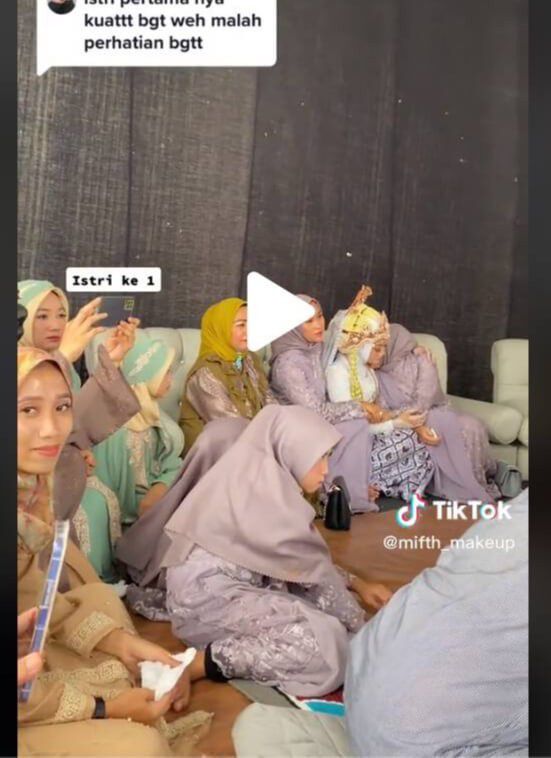 Sebuah video pernikahan poligami seorang pria yang ketiga kalinya menjadi viral setelah diunggah oleh akun TikTok @mifth_makeup. Tampak di video terlihat para istri dari sang pria yang setia menemani suaminya menikah lagi.