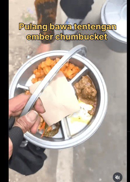 Video yang kini viral itu diambil saat mereka berjalan dari area resepsi menuju parkiran mobil. “Kami nggak berhenti ketawa sepanjang jalan karena ternyata isinya persis seperti yang kami kira ember berisi lauk-pauk lengkap,” tambah Ari.