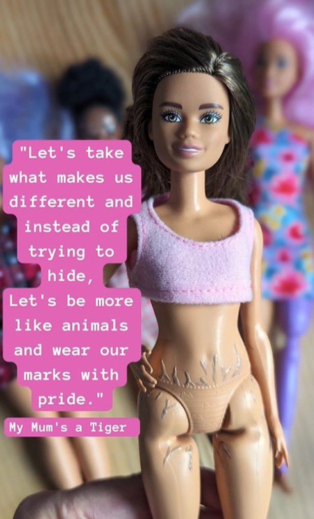 Kate Claxton menggambarkan stretch mark di boneka Barbie milik anaknya (via instagram)
