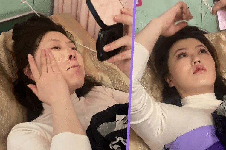 Bahkan ketika rasa sakitnya semakin hebat, ia tetap berupaya memasang bulu mata palsunya. "Wanita Tiongkok yang kuat tidak pernah menyerah, bulu mata palsu itu esensial!"