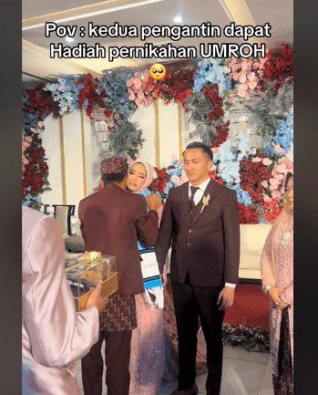 "POV: kedua pengantin dapat hadiah umrah," tulis akun TikTok @raditya_boditmc.
