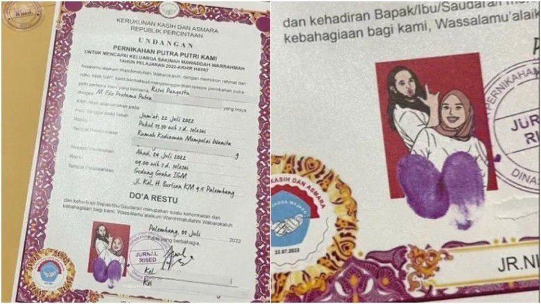 Ide undangan pernikahan itu pun viral setelah diunggah akun TikTok @jurnalrised. Dari postingan itu, tamapk kata-kata yang menuliskan kartu undangan dengan format yang persis dengan ijazah, disertai juga dengan sidik jari dan stempel.