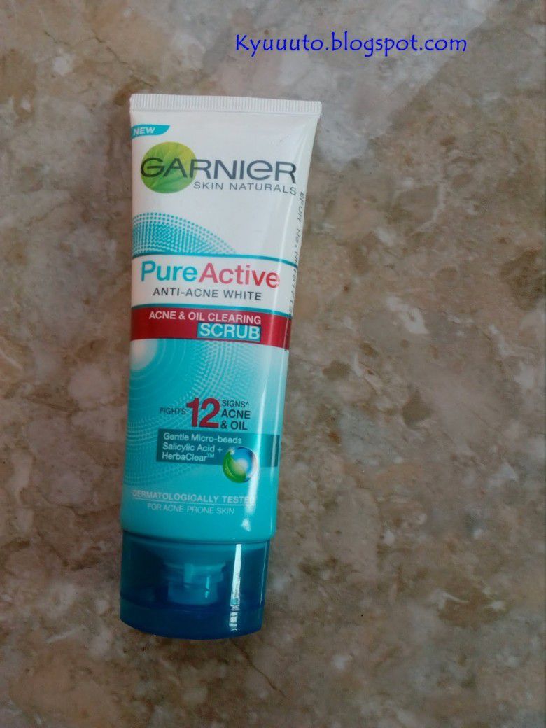 Untuk kamu yang memiliki jenis kulit wajah berminyak dan berjerawat, kamu bisa mencoba Garnier Pure Active Acne & Oil Clearing Scrub yang mengandung Pure Active.