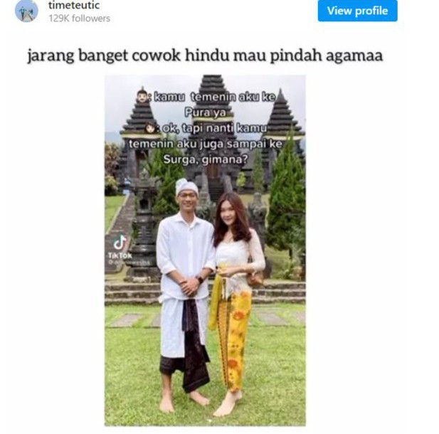 Dari video viral yang diunggah oleh akun Instagram @timeteutic, sang admin menjelaskan jika jarang sekali ada pria Hindu yang mau mengikuti agama kekasihnya.