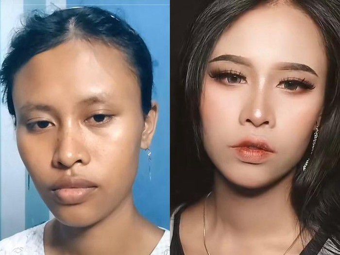 Seorang wanita mengunggah video transformasi makeup ala Korea (tiktok)